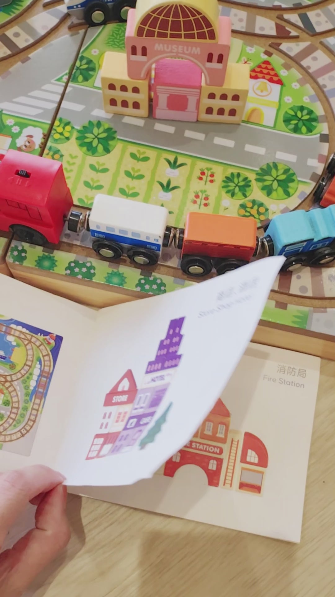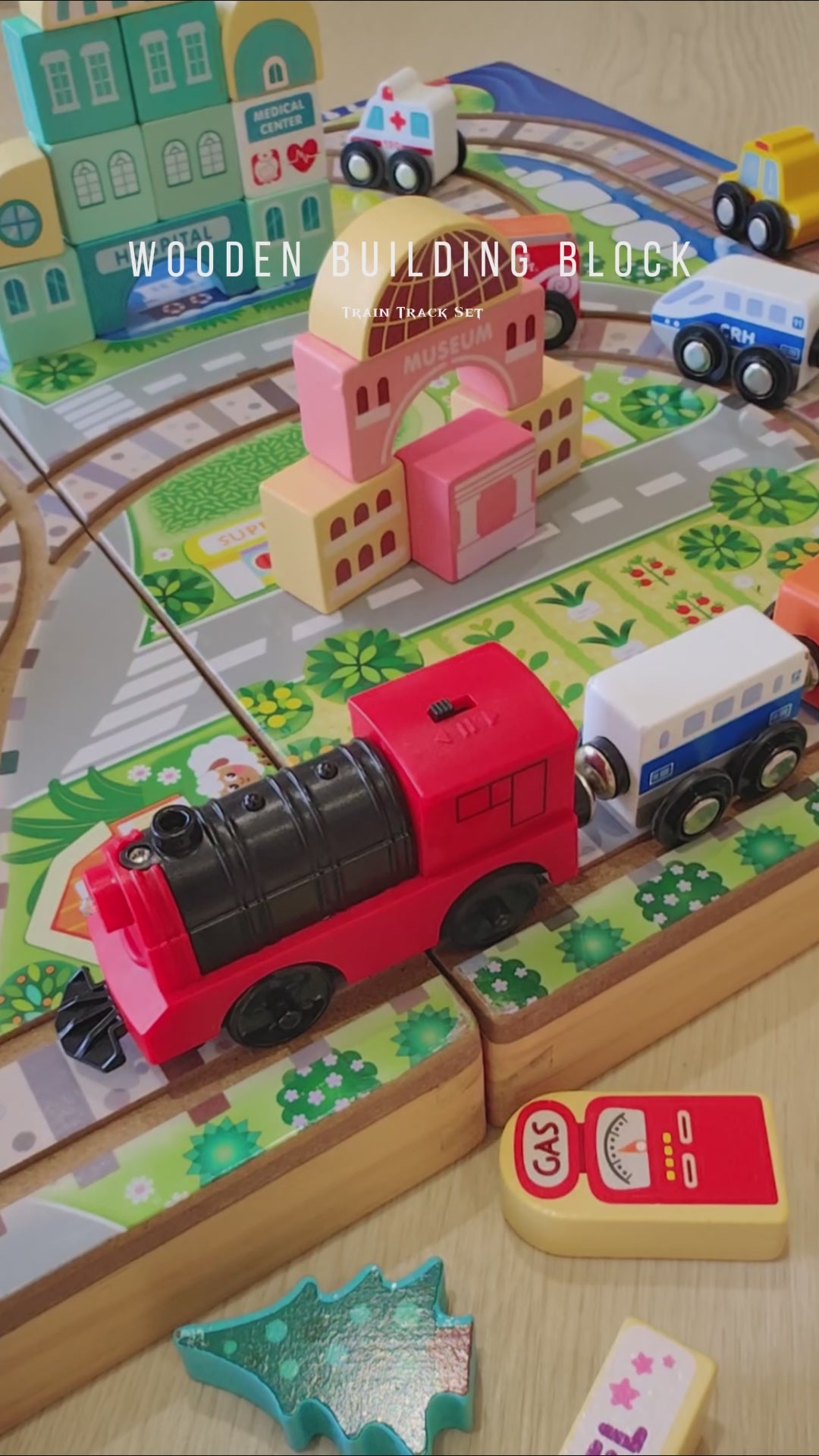 • Battery-Powered Train Engine: The engine is equipped with a battery, allowing it to move forward and backward along the track, bringing the city to life.