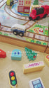 Introduce your child to a world of imagination and creativity with our Wooden Building Block and Train Track Set. This versatile toy set features beautifully crafted wooden buildings and accessories, creating a miniature cityscape that provides endless hours of fun and learning. The set includes a magnetic train with a battery-powered engine, capable of moving forward and backward along the track, effortlessly connecting with other carriages for a dynamic play experience.